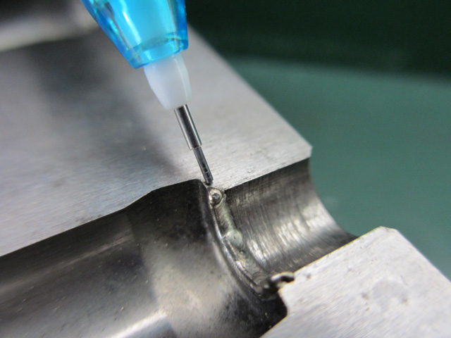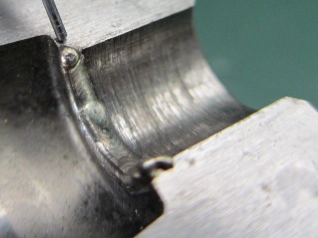 肉盛溶接とは、母材同士の接合ではなく、母材の表面に目的に応じた金属を溶着する方法です。 母材表面を硬化させたり、耐食性の向上、母材の補修・再生など、それぞれの目的にあった金属の溶接材料で母材表面にビードを置きます。※画像をクリックで拡大表示されます。